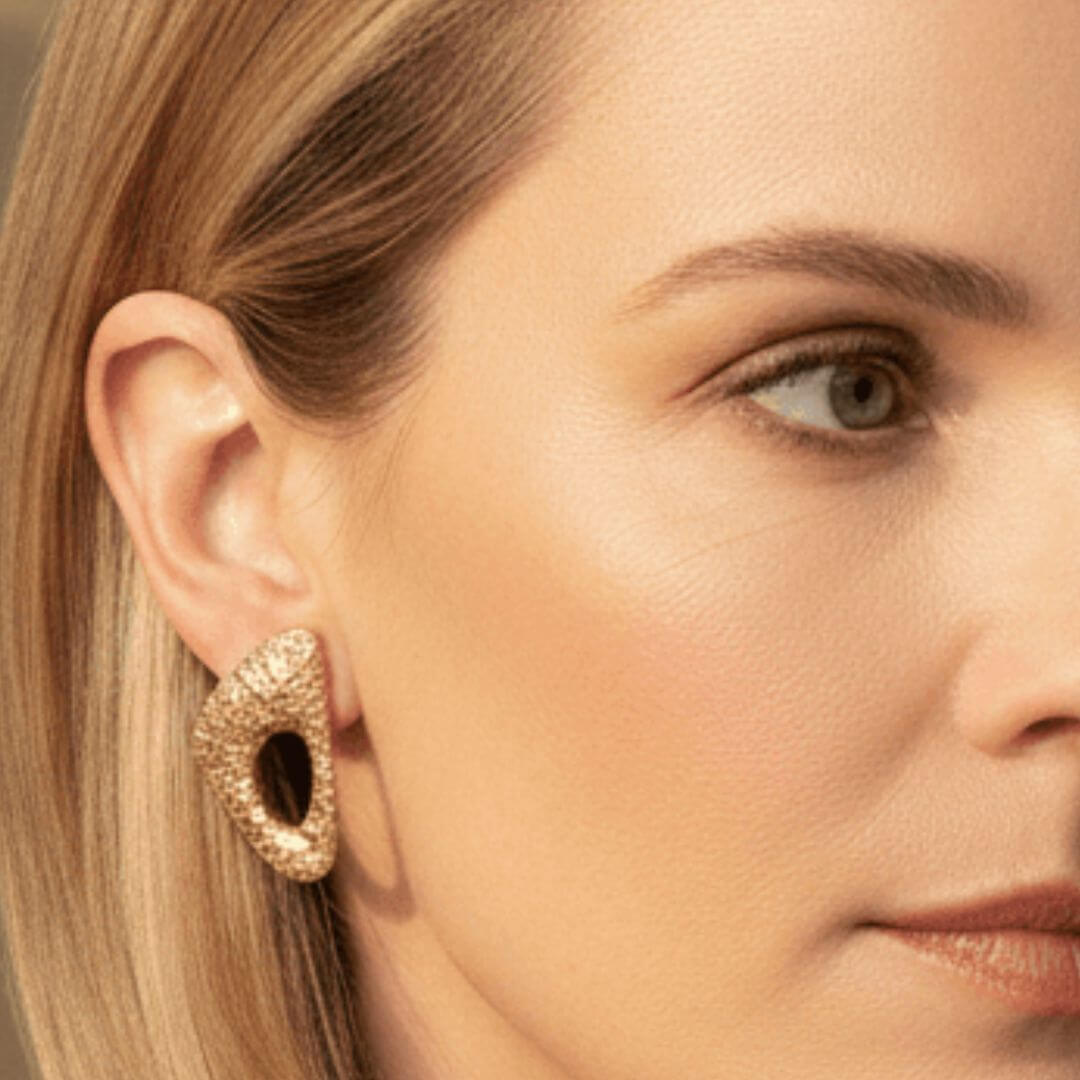 Prabangūs porceliano auskarai dekoruoti 12k auksu. Šie auskarai yra kruopščiai pagaminti iš aukščiausios kokybės porceliano. Nors ir dideli, tačiau dėl porceliano savybių yra itin lengvi, tad patogūs nešioti.