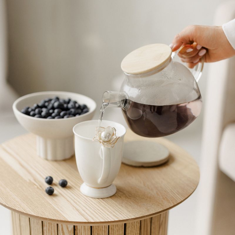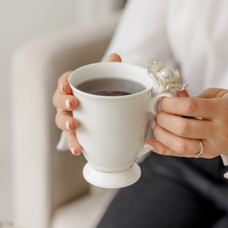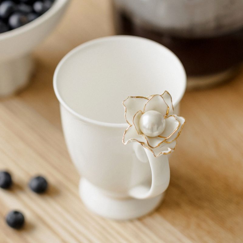Porcelianinis puodelis su perlu pagamintas iš aukščiausios kokybės porceliano, užtikrinant jo tvirtumą bei ilgaamžiškumą. Porcelianas puikiai išlaiko šilumą, tad galėsite mėgautis savo mėgstamu kavos ar arbatos gėrimu dar ilgiau. Kiekvienas puodelis yra kruopščiai gaminamas, todėl kiekvienas gaminys yra lyg meno kūrinys. Gamybos procese naudojamos tradicinės technlogijos, kurios užtikrina aukščiausią gaminių kokybę. Šį išskirtinį puodelį puošia rankomis nulipdyta gėlė, su viduje esančiu perlu. Tai elegantiškas ir subtilus puodelis, kurio dekoras kalba pats už save. Dizainas minimalistinis, tačiau būtent dėl naudojamų medžiagų suteikia prabangos ir išskirtinumo jausmą.